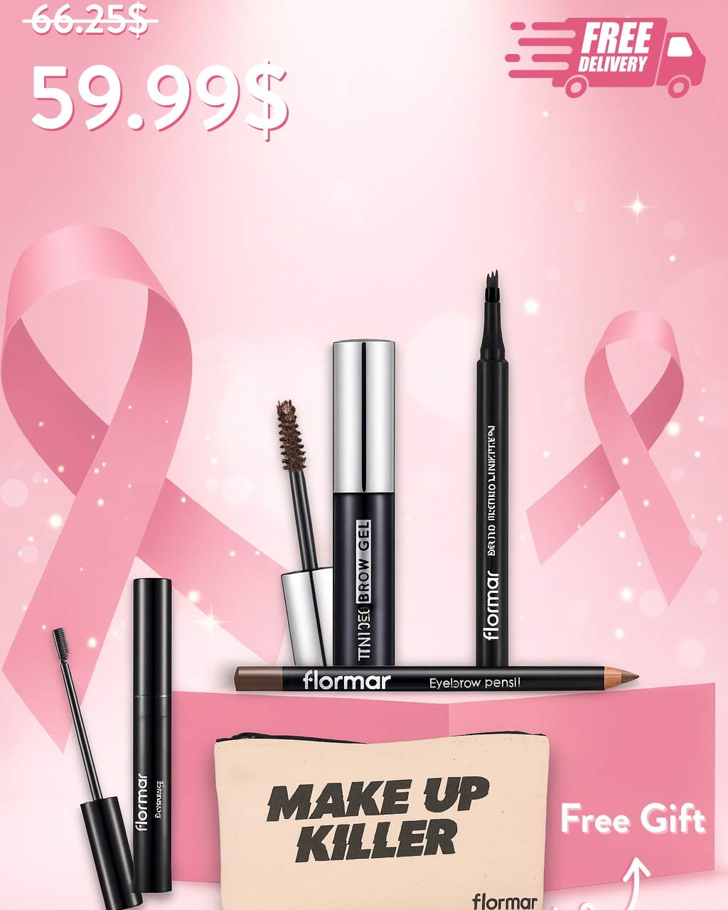 Flormar Brow Master Bundle – Complete Brow Kit + Free Make Up Killer Bag