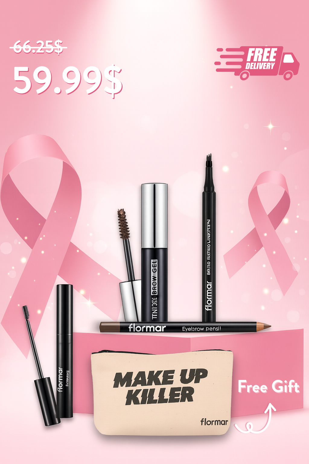 Flormar Brow Master Bundle – Complete Brow Kit + Free Make Up Killer Bag